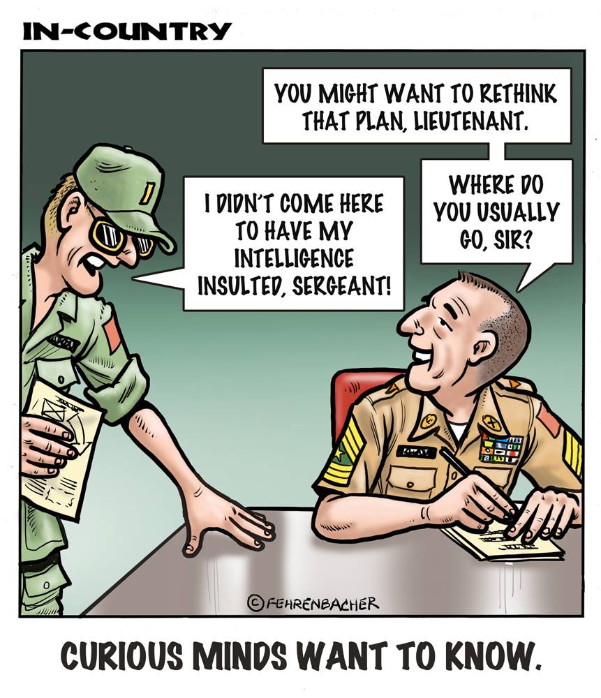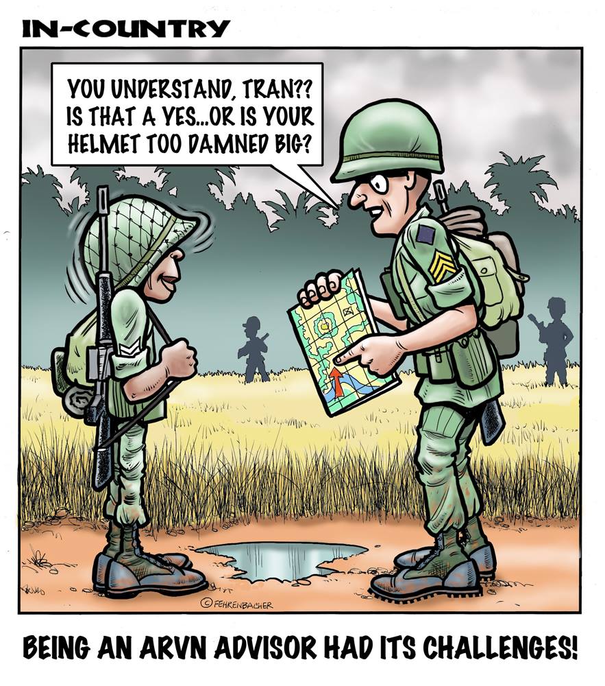 Phil enlisted in the Army in 1965 where he served for years in Vietnam. He became a graphic designer and has worked for the state of Oregon for 26 years. He retired in 2003 and started the Cartoon "In-Country". The cartoons reflect his experiences during his tour of duty in South Vietnam.