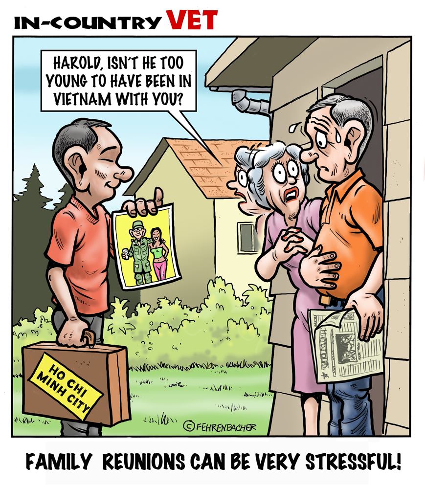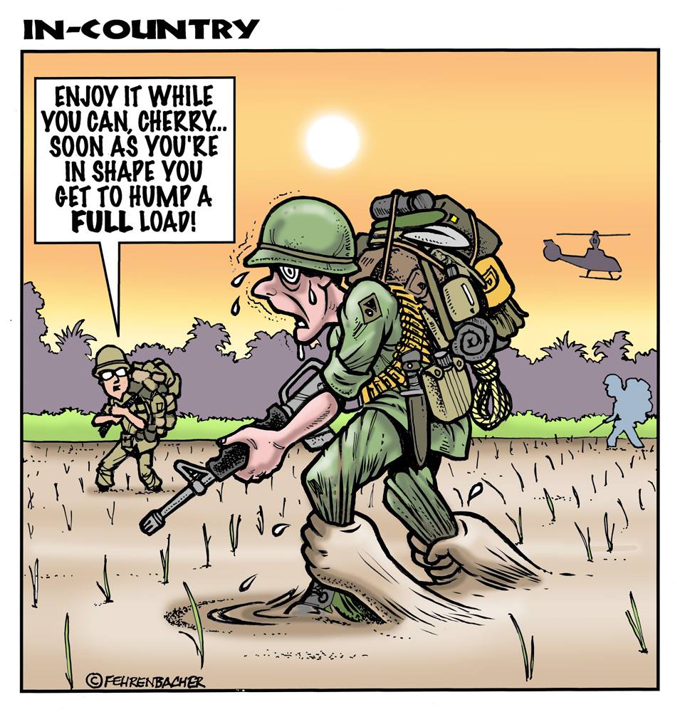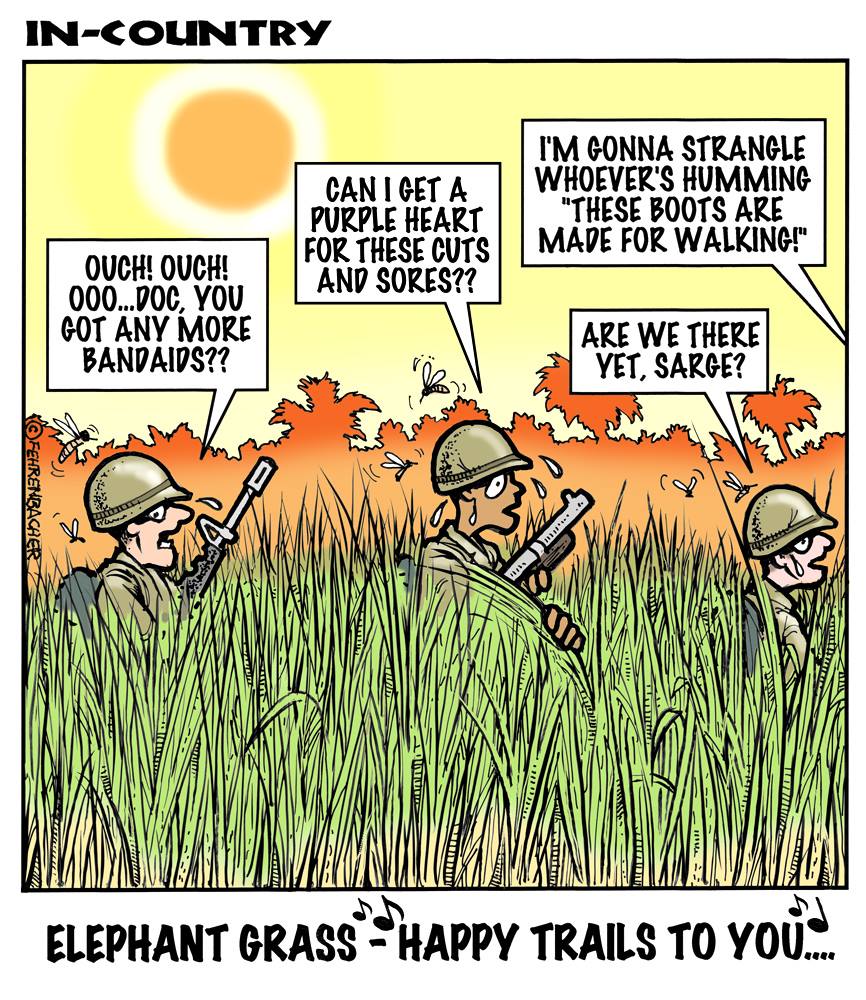Phil enlisted in the Army in 1965 where he served for years in Vietnam. He became a graphic designer and has worked for the state of Oregon for 26 years. He retired in 2003 and started the Cartoon "In-Country". The cartoons reflect his experiences during his tour of duty in South Vietnam.